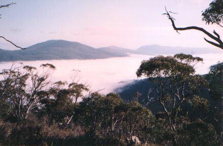 Bimberi and the Upper Cotter Valley - an early morning view from Mount Kelly.