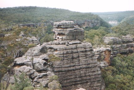 Another section of the cliffs opposite Rock Slabs Creek. Note the scale from the person near centre photo. (35KB)