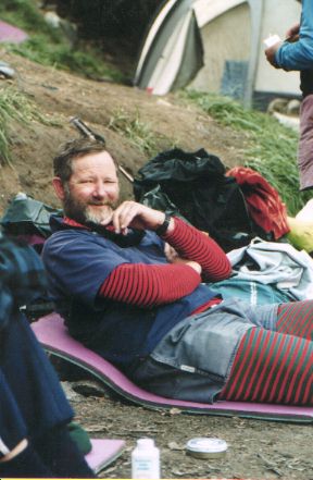 Relaxing at Paiju - back on solid ground and off the Baltoro Glacier (31KB) - photo taken by Sally Cameron-Stephen.